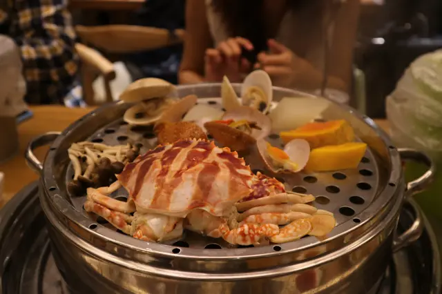 中式蒸氣石鍋食得多, 不過韓式就第一次試!😏 「九重鮮」其實係香港首間餐廳引入韓式九層塔海鮮蒸鍋, 目的都係著重係海鮮原汁原味, 九重塔每層食完之後, 都會將精華流到下層, 所以鮮味會逐層增加~😌 餐廳入口前設有一個玩味嘅等候區, 掛着男、女、小童嘅韓服供食客在等位時試穿和影相,好貼心嘅服務!😎 餐廳座位闊落,裝修簇新, 一室暖木色系,感覺傳統得黎,又夠舒適, 除左中間一排排適合大夥兒嘅枱櫈, 靠牆仲有卡座位,啱晒二人 韓式海鮮蒸氣火鍋有三款選擇: $398首爾塔、$498景福塔、$598濟州塔, 我地揀左最經濟實惠嘅首爾塔HK$398/位, 注意:每款火鍋都必須兩位起動, 而兩人份量只會提供五層海鮮塔而非九層, 一般要到四位或以上才會有九層的。 隨餐火鍋粥底可選素菜鮮魚湯、韓式豬手湯、韓式泡菜湯, 另外可以額外加錢要人蔘雞湯半隻($50)/一隻($100), 人蔘雞湯喺呢度嘅店招牌, 當然要試啦!😏 點完菜之後, 店家便奉上蘸醬和前菜, 蘸醬有三款:柚子豉油、鮮茄辣醬和海鹽麻油, 不過呢度嘅海鮮真係好新鮮, 所以整頓晚餐我都冇蘸過醬汁, 品嚐海鮮嘅原汁原味就好!😋 附送是日前菜:沙律、白菜仔、泡菜和酸椰菜, 仲可以免費添加一次!👏🏻 未上九層塔前, 店員先拿來一個大鐵鍋過來, 再把半隻人參雞和米飯放進去, 呢個就係九層塔嘅最後一層, 待吃完上層所有海鮮後, 便可有一大鍋嘅人參雞粥吃了!☺️ 過一會店員也把塔拿來了~ 店員在鍋蓋插入溫度計, 提醒我地只要溫度達到攝氏90°C便可以叫店員過來揭蓋。 第一層: 紅糟蘇格蘭蟶子、象拔蚌 (伴車厘茄、韮菜花) 蟶子大大隻,肉質爽彈多汁, 象拔蚌剪成條狀,鮮甜味美,嚼勁十足!😋 每層都有不同嘅蔬菜配搭, 令到蒸鍋更加吸睛!👀 第二層: 日本元貝 (伴勝瓜) 鮮嫩彈牙嘅元貝, 仲有好多湯汁,鮮甜得很!😋 海蝦 (伴金菇、野菜百頁豆腐) 海蝦新鮮,肉質爽彈~ 第三層: 花尾龍躉、貴妃蚌 (伴八爪魚、木耳) 花尾龍躉大大件,啖啖肉, 肉質鮮甜嫩滑,又有咬口~ 貴妃蚌好大隻,😍 鮮甜多汁,正到連湯汁都飲埋!😋 第四層: 沙巴肉蟹 (伴秀珍菇) 肉蟹好大隻,厚肉,又好多蟹膏, 蟹肉鮮甜,蟹膏豐腴味美, 食到想再encore!👍🏻 值得一讚的是, 店員仲會主動問我地洗唔洗幫手拆蟹爪, 蟹肉拆得完整無缺,感動!❤️ 大花蛤 (伴木瓜、爆濃芝士丸) 花蛤大隻,肉質鮮甜彈牙, 木瓜、爆濃芝士丸雖然只係伴菜, 但尤其出色! 木瓜香甜,芝士丸醬爆,「芝」味獨特!😊 第五層: 鮑魚 (伴白蘿蔔、冬菇) 雖然我哋冇升級轉南非鮑魚, 但鮑魚軟腍鮮味,彈性十足! 粟米、日本南瓜、日本蕃薯、墨汁豚肉丸 蕃薯🍠和南瓜香甜, 粟米超甜多汁, 墨汁豚肉丸口感爽彈,不錯吃!👍🏻 最後,梗係要食聚海鮮蒸鍋嘅精華於一身嘅粥底!☺️ 在食之前,店員倒下米粒, 粥鍋裏除了湯底外, 就係來自每層蒸煮海鮮過程中流出來嘅精華, 店員仲會幫我地將隻雞拆肉, 服務一流!👏🏻 之後就製作成為啖啖肉嘅人蔘雞粥啦! 鮮甜得很,可以食到飽呢! 粥底份量十足,兩個人根本冇可能食得晒, 之後店員就走過黎主動同我地講話幫我地打包,😄 原來有不少客人最後都會食唔晒, 所以貼心地準備紙碗, 替食客將食不完嘅食物都打包, 一來不會浪費食物, 二來可以把粥帶回家,延續九層塔嘅滋味~😏 最後仲送自家製甜品~😍 有輕乳酪蛋糕、紫薯撻、檸檬🍋雪山撻, 輕乳酪蛋糕食落唔會太heavy, 撻皮好酥脆,紫薯香甜適中,檸檬雪山酸甜又refreshing 呢度仲有半自助午餐,$58起, 仲包飲品,好抵喎!👏🏻 …查看更多