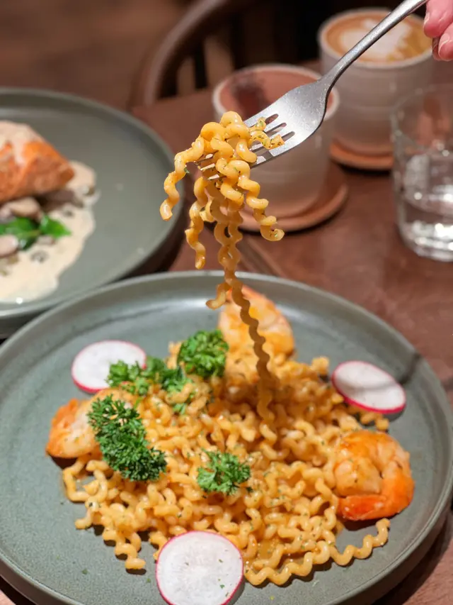 香煎海蝦龍蝦汁捲捲意粉