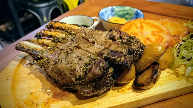 是夜和老公及朋友到太子晚飯及睇戲,朋友們說有間隱世小店主打碳燒,聽到隱世二字已經好開心,食指大動!在朋友們的帶領下左穿右插到了一條寧靜的小街,看到一道重重的大門,心想是入口嗎?如何進內呢。。。原來入口在則邊😂店內面積不大,從窗外都可以看到店內的情況。餐牌分有:串燒、意粉、飯、主菜、甜品朱古力LATTE朱古力味香而不會太甜軟殼蟹白汁扁意粉軟殼蟹炸得脆卜卜,夠惹味,白汁扁意粉軟硬度剛好,掛上白汁吃有口感之餘又有濃香白汁味。海膽魚籽意大利飯海膽藏於飯內,每口都到海膽的鮮味,而且意大利飯很creamy,配上魚籽吃海洋的鮮味會更出。炭燒美國有骨牛肋條牛肋條好大條,真的很巨形,外面烤得有炭烤香味,內裡半熟,肉汁一切便滲出來,牛味很濃,有嚼勁。香草炭燒羊架羊肉也是充滿炭烤香味,羶味會不強,配菜的薯仔和蕃茄也過,很有風味。…查看更多