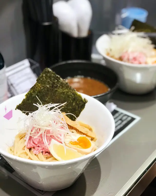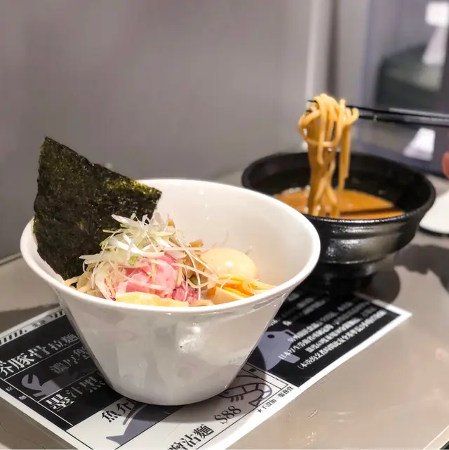 🦀濃厚蟹蝦豚骨拉麵(額外加咗溏心蛋+紫菜)💰$88🍜魚介豚骨沾麵(額外加咗溏心蛋+紫菜)💰$83.⚡️大學個陣食過旺角嘅漁場台風 ,一直都覺得佢哋嘅沾麵係食過最出色,前排先知原來🎏灣仔開咗分店,所以就去try try~.⚡🍜魚介豚骨沾麵沾汁湯偏稀,唔係印象中嘅濃稠,味道有豐富嘅豚骨、魚介、醬油同大蒜香味,不知不覺就一口接一口咁吸麵🤣味道確係會上癮.⚡🦀濃厚蟹蝦豚骨拉麵湯底濃厚,有滿滿蟹蝦嘅鮮味✨,可以話每一啖都係海洋嘅精華🌊🥰…查看更多