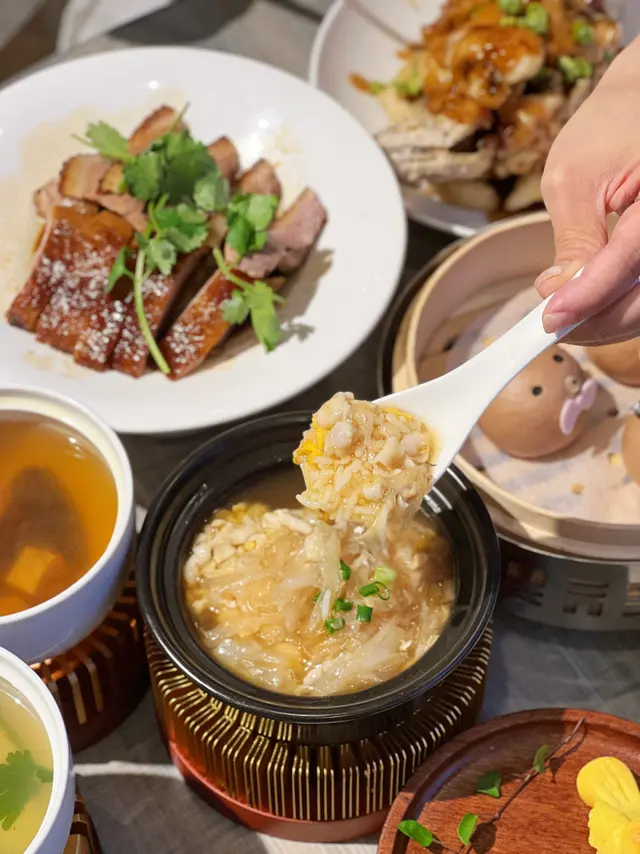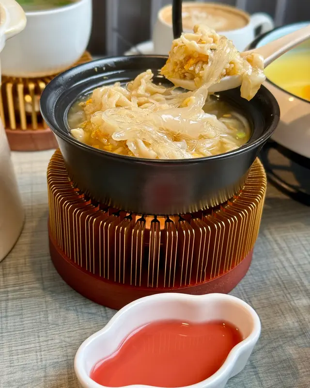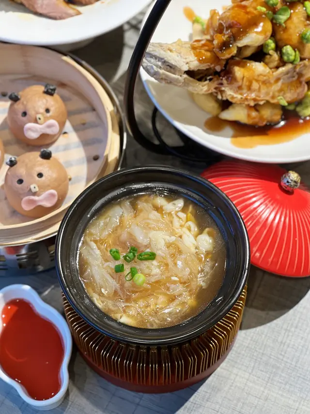 精緻點心向來都深受人喜愛,今次去到一間有很多精緻點心的餐廳〔自己人〕,原來更是一間特色新派潮州菜館,餐廳將傳統潮州風味再加入創新元素,製作出不少精緻的打卡點心及地道小菜。店內裝潢時尚雅致,進入餐廳內環境更是闊落空間感大,而且有不少梳化卡位亦坐得舒適,感覺是朋友及一家人聚餐的好地方。【游水金魚湯餃】(HK$49)店內人氣打卡點心之一,將整個湯餃設計成魚缸盤子般的場景,用湯浸著湯餃在魚缸盤子內,金魚造型的湯餃精緻又可愛,就像游來游去一樣,湯餃餃皮入口薄而煙韌,內裡有紮實的蝦肉餡,彈牙爽口,維肖維妙的金魚造型,打卡真是效果一流,有點捨不得吃。【黃皮手打檸檬茶】(HK$29)杯上有隻迷你小茶壺,噴出飄逸的乾冰霧氣,仙氣十足又搶眼的打卡飲品,具有獨特香味的黃皮,入口順喉而且不太甜,沒有傳統檸檬的酸重味道,很解渴。【清香茉莉手打檸檬茶】(HK$29)清爽的茉莉及手打檸檬香味,有陣陣茶香而且杯底有絲絲手打的檸檬肉,味道不太甜層次口味很不錯。而店內凡點選一杯手搖飲品可以免去一位的茶錢,很化算的飲品。【鳳梨雀仔】(HK$39)用原個雀籠載著三隻黃色的雀仔,雀仔的眼、嘴、翅膀和尾巴都製作得很清晰,咬開有滿滿的鳳梨纖維餡料,鳳梨甜甜的,外酥皮亦鬆化,可愛的造型可以說是滿分,打卡必備。【小小梨子】(HK$39)製成整粒梨子一樣的造形,像真度很高,小梨子外皮像鹹水角一樣有脆糯的口感,內餡有牛肉,外脆內軟熱辣辣吃不油膩。【雪茄春卷】(HK$39)很特別的雪茄點心造型,用了玻璃盤盛載著,仿似像煙灰缸一樣,玻璃盤底內有黑芝麻模仿煙灰,雪茄入口是麻辣味道的春卷,連雪茄招紙都有,真是很特別用心的製作。【潮汕蠔烙】(HK$89)吃潮州菜怎可以不叫潮州蠔餅,很大的一塊蠔餅,炸得金黃色很香脆,入口鬆脆香口,蠔肉脹卜卜,可以蘸魚露或辣椒醬吃,記得要熱騰騰第一時間吃,惹味又飽肚。【魚翅撈飯】(HK$169)鍋下有小火爐保持溫度,粒粒米飯吸收了魚翅湯汁的精華,啖啖魚翅撈飯很滿足。【孜然高原羊排】(HK$149)每條羊排都很多肉,入口油脂少皮香肉嫩,而且肉有連著羊皮,增加了不少羊羶香味,孜然是我最喜歡的風味。【煙燻豆腐煲】(HK$99)餐廳新菜式,鍋下有火爐保持著熱度,用蝦及海鮮做成高湯,再加入蜂巢豆腐及鮮蝦,高湯很鮮甜,吸了高湯的蜂巢豆腐很軟腍入味。…查看更多