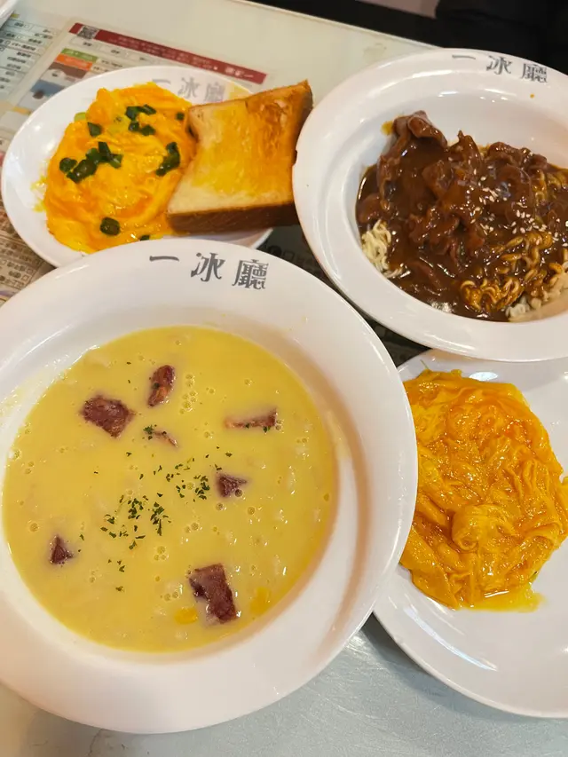 最出名一定係佢哋既粟米湯 同埋炒蛋🍳我分別去過兩次 都無令我失望!餐廳食物種類多 絕對唔會悶 而且每人仲有3-4款每日限定😗 每個餐仲配一杯熱飲☕~留意返佢哋只係開到下午5點👀日式咖哩汁🍛&粟米汁🌽牛肋條蛋包飯 ($67) 呢個蛋包飯想食好耐 佢果然無令我失望!個蛋超級重蛋味 而且炒得好滑+ fluffy🍳 牛肋條份量都幾多 至少5-6大舊 好飽🤰🏻而且牛肉燘得好淋✌🏻唔會柴/ 乾!再配埋d醬汁真係100份!性價比超級高!醬汁選擇都有好幾款 仲有芝士汁🧀️、番茄蓉🍅、同埋黑椒汁!鮮粟米忌廉湯通粉🫕($46) 呢個超級適合早餐 又有佢哋既招牌粟米湯 又可以食到佢哋既炒蛋😍 幸福!炒蛋重要揀埋蔥花炒蛋 令到味道更加豐富👅就連麵包佢哋都唔hea 有的選擇丹麥吐司 或者厚吐司🙌🏻🍞 味道:🍳🍳🍳🍳.5/5 📍一冰廳 (土瓜灣)地址:土瓜灣長寧街53號地舖…查看更多