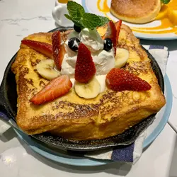 九龍城云集泰國餐廳就係人都知,但早排發現呢到有間湖水綠色招牌嘅小清新cafe,主打🥞梳乎厘班戟。見到呢度嘅pancake配搭🍓🫐新鮮水果,全部即叫即製,一於試下🥰🥞招牌班戟 ($73)呢度嘅pancake非常鬆軟,食落軟綿綿充滿空氣感,而且蛋味香濃,口感超軟熟😍🥭鮮芒粒粒班戟 ($98)同樣有兩件pancake,新鮮芒果粒配搭自家忌廉,再淋上芒果汁。芒果好香😋味道鮮甜多汁✨🍌朱古力焦糖香蕉麥片班戟 ($88)香蕉表面用火槍燒咗焦糖好脆口👍🏻配上比例適中嘅忌廉同朱古力醬,唔會食到太膩。旁邊仲有麥皮同乾杏仁做伴碟,令到口感層次更佳,非常豐富😍呢間小店裝修簡約,行到攰坐低食個甜品都幾舒服,經過九龍城都可以試下…查看更多