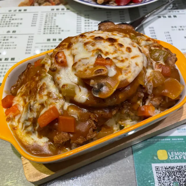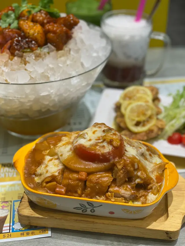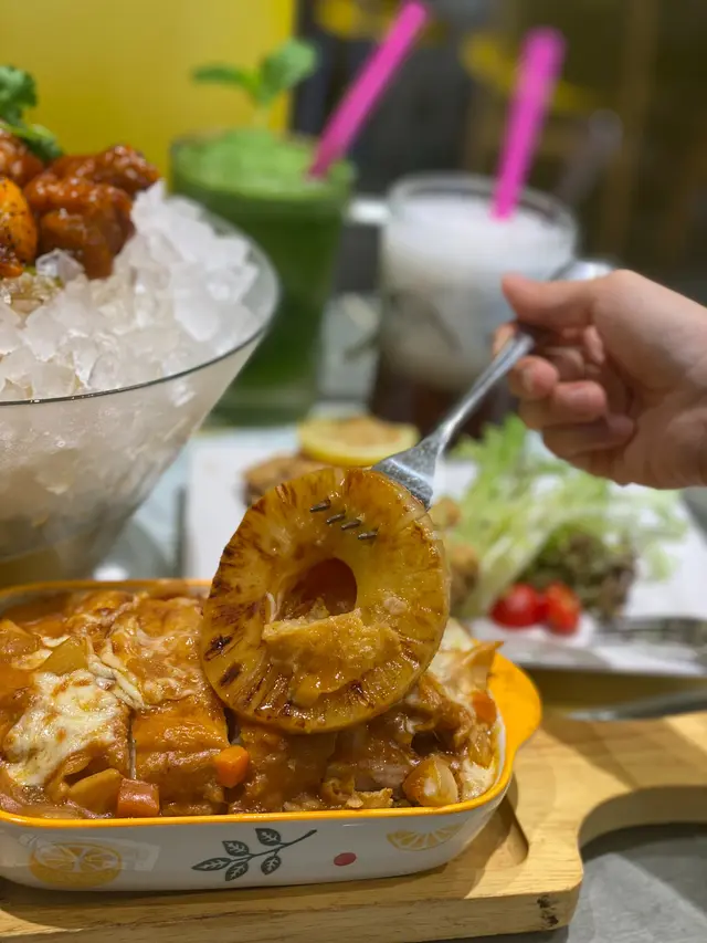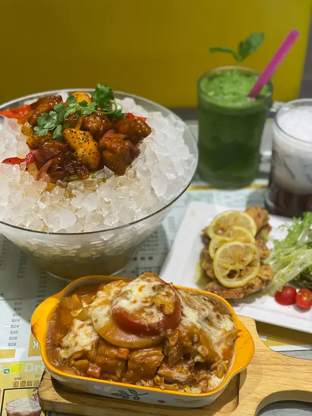 ʕ•ﻌ•ʔฅ 𝓛𝓮𝓶𝓸𝓷 𝓒𝓪𝓯𝓮 全間餐廳均是以黃色作主題,以配合「檸檬冰室」的店名。以港式茶餐廳來說,裝潢頗為有主題性,燈火通明。食物價錢合理且份量多,十分適合平日想不到食什麼的人士盲入。可惜這天的一口西多伴雪糕售罄,略感遺憾。★ 鮮茄菠蘿焗厚豬扒飯 $60餐廳的必叫菜式一, 大量的芝士鋪滿整個焗飯,趁熱吃會有「拉絲」的效果,豬扒比較大件,且肉質鬆軟,並配有數片蕃茄和菠蘿,再加上最下層的是蛋炒飯,而並非普通白飯,豐富了焗飯的口感。★鮑魚雞煲 $80亦是餐廳黃牌之一,打開蓋面頭有三粒鮑魚、數粒冬菇、還有數量不少的雞塊。鮑魚雖然不是什麼頂級一頭鮑,是普通一口鮑魚仔,鮑魚尚算入味,不會過韌,與冬菇和雞塊亦十分融洽,以不到一百的價錢來說,真是沒有什麼可挑剔了。★松露芝士炒蛋多士 $28因為叫不到「一口西多伴雪糕」,所以轉叫了這個。芝士炒蛋都叫做嫩滑,但松露醬的份量可適當增添。★經典黑牛(朱古力) 跟餐+$16現在很少餐廳可以叫這個,黑牛是指朱古力雪糕加可樂,而它的朱古力雪糕更有朱古力粒,為第一次飲黑牛的我留下一個不錯的印象。★ 椰汁紅豆冰 跟餐+$12非常大杯的紅豆冰,是普通餐廳的兩倍, 紅豆份量充足且軟糯,整體甜度適中,但椰汁味不算十分濃厚。…查看更多