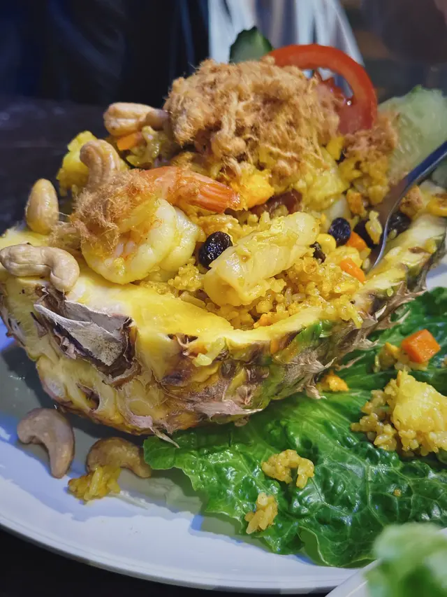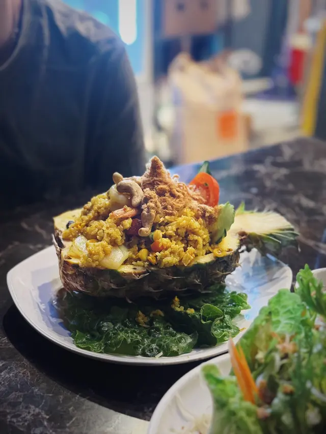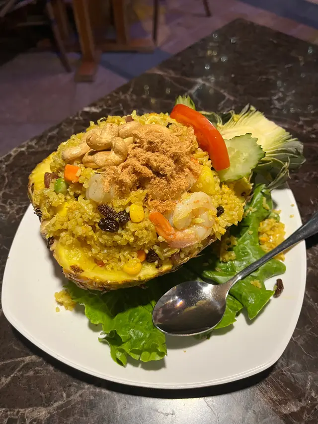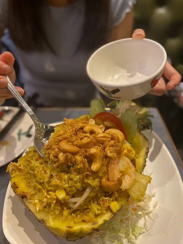 呢間泰國餐廳🇹🇭嘅價格以係奧海城來講算抵食,價錢比出面泰菜平,但絕對真材實料,由泰國人主理,侍應都係泰國人,服務態度非常好。餐廳有分室內同露天座位,露天都好Chill下。兩個人叫咗一餸一菜一飯,食到勁飽好滿足。💜鮮菠蘿海鮮炒飯 $98 (🌕🌕🌕🌕🌕/5)勁足料有蝦、魷魚、青口、鮮菠蘿,用料新鮮,配料仲有肉鬆、腰果、提子乾、臘肉,多種材料夾埋口感豐富,而且份量超多,CP值極高。💜泰式黃咖喱薯仔雞 $88(配泰式薄餅$45)(🌕🌕🌕🌕🌕/5)黃咖哩香味濃郁,椰香同香料味幾出,帶小辣。雞肉同配菜足料,雞肉肉質鮮嫩,薯仔同洋蔥等配菜都入好味,叫左一份泰式薄餅配咖喱,薄餅香脆同埋有8小塊,薄餅索滿咖哩汁超好味😋💜泰式炒通菜 $72 (🌕🌕🌕🌕/5)炒得好有鑊氣,但唔會太腍,炒得爽脆剛剛好。小辣得黎好香口,夠哂惹味。🍴整體評價:✅性價比高✅高質泰菜✅服務態度好✅適合情侶👩‍❤️‍👨閨密👯‍♀️大伙兒👨‍👩‍👧‍👦💰人均消費:$150…查看更多