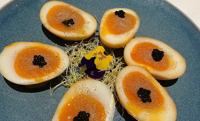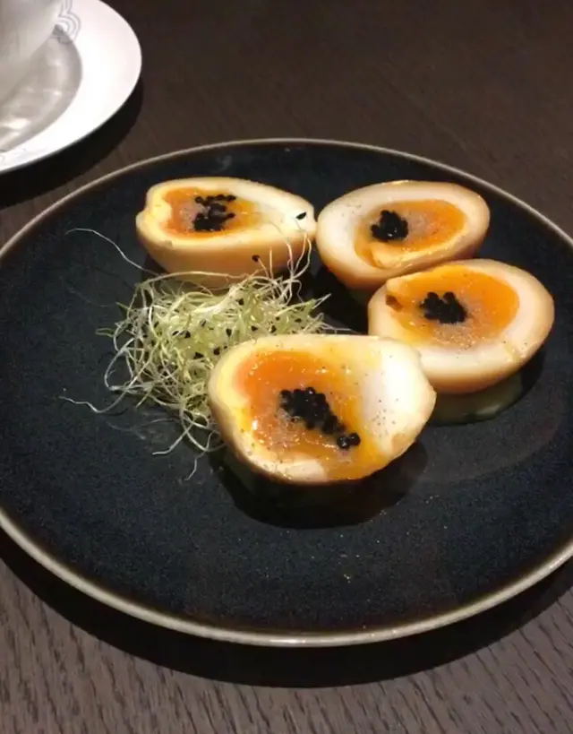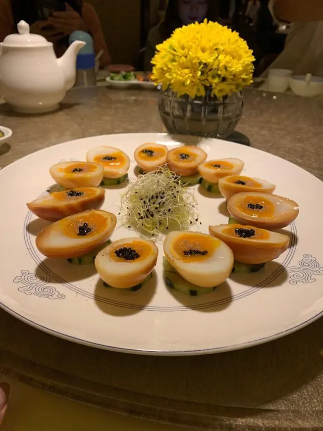上一次嚟食大閘蟹,覺得環境同服務都唔錯;今次散叫小菜。因為人多,叫咗好多嘢。想特別介紹嘅係糖心蛋、東坡肉同豬大腸。糖心蛋煙燻得啱啱好,蛋黃非常滑,而且好有蛋香;用黑松露整咗一啲細細嘅黑珍珠粒撒喺蛋面,又好睇又香。東坡肉落咗好多刀功將五花腩切成薄片,拼砌成立體金字塔,賣相有啲震撼。扣肉入口即溶,梅菜鹹咗啲,配夾餅食,冇咁油膩。豬大腸有個好好聽嘅名,叫碧綠圈子;大腸煮得好腍好入味,芡汁稍為甜;而隨碟嘅蔬菜用咗豆苗,好香嫩。今次介紹嘅其中兩個菜,都屬於三高、重口味。有興趣試的話量力而為☺️…查看更多