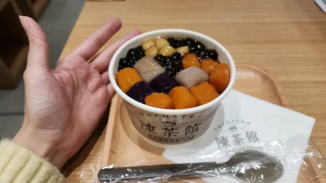 芋圓控最愛❤️❤️❤️ donaldduck123等級32025-05-302K 瀏覽 關注 每次係黃埔附近食完飯,都會嚟陳茶館食糖水,呢度啲糖水大大碗,又唔算好貴😋!黑糖珍寶仙草⭐️⭐️⭐️⭐️⭐️入面有芋圓、珍珠、小丸子、仙草、冰底,但啲冰唔係打得好碎🧊芋圓好煙韌,大大粒,好有芋頭味、紫薯味同蕃薯味🍠。珍珠都好煙韌,好有黑糖味,份量亦都好多🥄。仙草好清涼,唔太甜,食落口好舒服😋!佢呢度嘅糖水真係好大碗,食完會有啲飽🤰!…查看更多以上食評乃用戶個人意見 , 並不代表OpenRice之觀點。讚好分享芋圓控最愛❤️❤️❤️ 陳茶館芋圓甜品專門店 (黃埔天地第3期百寶坊) https://s.openrice.com/QrbT0rtyk00檢舉 張貼 評分5味道5環境5服務5衛生5抵食推介美食黑糖珍寶仙草$38用餐途徑堂食