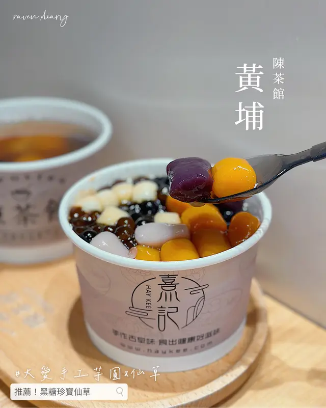 飯後甜品大愛!手工芋圓 仙草💕~ helloimbunny等級42023-05-21738 瀏覽 關注 黃埔|飯後甜品大愛!手工芋圓 仙草💕~{陳茶館} @chans__tea.店名雖然像傳統鋪 其實是小清新的甜品店 ᐕ)ノ主打 #手工芋圓 #仙草 #桃膠 的糖水組合週末飯後時段 已經有堆人在門口排隊呢~如果不想排隊 也可以叫外賣~𝘿𝙞𝙨𝙘𝙤𝙫𝙚𝙧 𝙢𝙤𝙧𝙚 𓄼 𝘐𝘯𝘴𝘵𝘢𝘨𝘳𝘢𝘮: @𝘳𝘢𝘷𝘦𝘯.𝘥𝘪𝘢𝘳𝘺 𓄹—✎ 黑糖珍寶仙草 $38配料:芋圓、珍珠、小丸子、仙草仙草下面是黑糖碎冰托底芋圓地瓜圓 口感十分煙靭彈牙!超好味♡♡♡仙草口感是偏爽口 似龜苓膏~ ✽好味指數:★★★★/5.✎ 薑汁桃膠三寶 (熱)$42配料:芋園、桃膠、小丸子個薑汁湯底超超超夠辣(* ⁰̷̴͈꒨⁰̷̴͈)!熱食的芋圓比凍的較軟身~ 不過芋頭/地瓜味道更出~✽好味指數:★★★★/5—| 𝘼𝘽𝙊𝙐𝙏 |⚐ 陳茶館芋圓甜品專門店 地址: 紅磡必嘉街120號黃埔天地第3期百寶坊地下G12號舖人均消費:HK$65 (ppl)回訪指數:🤤🤤🤤🤤/5環境舒適:🪑🪑🪑/5…查看更多+ 3以上食評乃用戶個人意見 , 並不代表OpenRice之觀點。2分享飯後甜品大愛!手工芋圓 仙草💕~ 陳茶館芋圓甜品專門店 (黃埔天地第3期百寶坊) https://s.openrice.com/QrbT0zLaaW0檢舉 張貼 評分4味道4環境4服務4衛生4抵食推介美食黑糖珍寶仙草$38黑糖珍寶仙草$38薑汁桃膠三寶 (熱)$42黑糖珍寶仙草$38用餐途徑堂食
