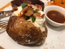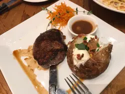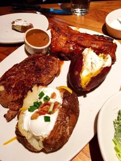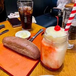 掛住黑糖包,所以又嚟咗☺️第一條黑糖包有啲失望,凍嘅😣平時係暖笠笠㗎⋯⋯為咗唔好浪費食物都係食晒,雖然凍食有啲乾。平時飽到唔會加點,但今次為咗黑糖包以嚟,最後都係叫侍應比多條😛第二條同平時嘅一樣暖笠笠非常軟熟好好味。第一條麵包嘅小小失誤唔緊要啦🤪滿足🥖因為真係為咗黑糖包而嚟其他嘢就求其點🤣只係點左一個USDA NY STRIP SIRLOIN,跟埋兩個side 揀咗焗甜薯同埋蔬菜,跟埋一個沙律同飲品。沙律簡單得來又夠醬汁好味👍🏼冇諗過呢個求其嗌嘅牛扒會咁Juicy咁好味。冇乜肥肉但又唔會乾👍🏼而且係餐牌上面價錢最經濟實惠嘅一款。同我一樣為咗黑糖包而去嘅試呢一個都唔錯。焗甜薯簡直係我嘅配菜首選。食完濃味嘅牛扒,食返少少甜薯中和返油膩感,放到最尾食仲可以當甜品食添😁…查看更多