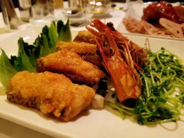 今次初嘗明閣去😋試了一下秋令·鮮旬蟹饌,服務員服務有禮勤快,但不知是否多人點蟹饌餐,上菜一與旁邊餐桌一起上的關係,變相上菜有點急,未食完一道,另外一道就上了,感覺有點似食快餐😵💫,希望如果下次再去食時能跟返顧客的速度上菜。 £單點£龍皇披金甲:一道以石斑魚塊、蝦膠及蝦整成的菜式,中間為石斑魚塊釀蝦膠後再油炸,口感香口,魚有魚味,蝦有蝦味,兩者暫時未見有加成。魚塊亦過火喉肉質變老影響了口味。菜式加入了薯蓉在蝦頭及蝦身部位造就立體效果。 原隻脆皮妙齡鴿:妙齡關係比較細隻,味道正常。 £秋令·鮮旬蟹饌£皮蛋紫薑豆腐以黑醋汁調味,紫薑皮蛋香口,再絆香滑豆腐。 蟹粉小籠包:蟹粉蟹肉味道正常,size比一般小籠包大,皮薄較易夾穿,器皿以碗上這道菜講真難夾到唔穿😵💫。 蟹粉金菇脆卷:以炸金菇脆卷面頭加上蟹粉,味道可以,加成效果不大。 至尊蜜汁叉燒:鮮嫰多汁,肥瘦均勻。 黑醋珍珠蟹粉蟹肉燕窩羹:一個非常足料的菜式,每一匙羹都有蟹粉蟹肉加上燕窩,每口都鮮味感及咬感。 玫瑰虎蝦球:蝦肉肉質爽脆,口感有點似玻璃蝦。 清蒸大閘蟹:五両重的雄蟹,含膏量雖然未到爆膏,但份量是令人滿意的。 蟹粉扒時令有機菜苗:蟹粉芡以蟹肉蟹黃碎薑整成,絆以鮮嫰爽口的豆苗,由於較多薑偏微辛。 生炒臘味糯米飯:糯米飯煙韌,內裡有冬菇及蠟腸香口。 桂花薑茶紫薯水晶湯丸:桂花清香,薑茶汁偏向辛口什至有點嗆口。…查看更多