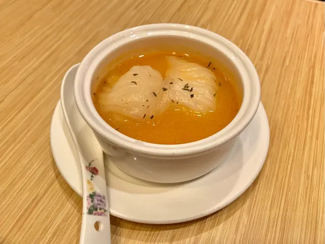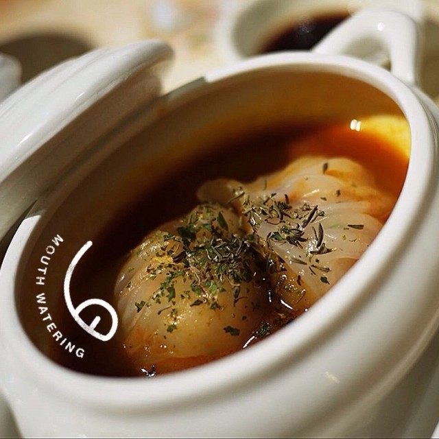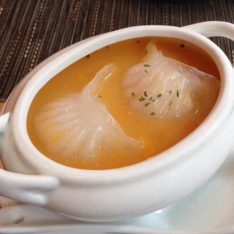 臨近年尾去商場血拼,行到攰搵個地方嘆個下午茶,見佢d點心價錢唔算貴就試下~幾鍾意店內呢盞超大既紅色水晶吊燈,有中式味道又唔會太古板。先黎上左個雪影叉燒包,麵包皮唔會太厚,微甜既雪山外層鬆脆,同入面咸香既叉燒餡好夾。整個都算係幾好食,係可惜唔夠熱度,如果剛出爐咁會超正!另一樣叫左龍蝦湯三皇餃,係店外已經俾menu張圖吸引到。好似灌湯餃咁上法,不過入面係兩隻蝦餃咁既蒸餃。夾起既時候餃皮個底已經浸到淋晒,一夾就爛開...至於個餡,食落爽口唔錯既,不過係邊「三皇」就食唔出~menu仲有一款個名同賣相都好特別既「牛肉手袋」,外樣似蘿蔔絲酥個種酥皮,不過厚身左少少,手袋入面「袋住」既係牛肉碎粒。賣相的確好得意,可惜焗得d牛肉太老太鞋,食多兩啖個口仲好乾,冇咩肉汁keep到。以尖沙咀地段黎講,呢間點心性價比都算ok,食物水準就有改善空間,有機會都會想試下佢晚飯小菜睇睇~…查看更多