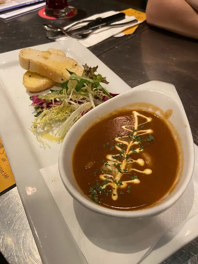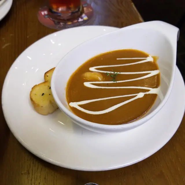 而且沙律嘅份量多,酸辣汁有啲辣,如果食唔到辣嘅朋友就要注意。法式干邑龍蝦湯($69),另外仲可以加酥皮。龍蝦湯會連埋兩塊法式麵包,加埋湯好好食,龍蝦味十分濃郁,食得出用咗真材實料去煲。廚師仲好有心機,喺上面加埋少少拉花效果