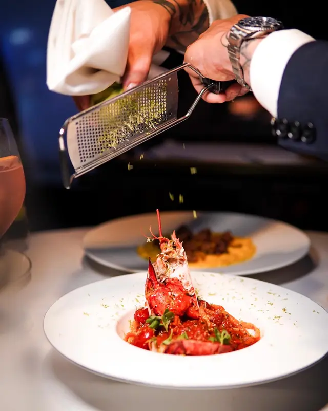 北京道一號嘅無敵大海景餐廳,前身係Aqua,環境同服務都好優秀,好適合情侶嚟食!. 🎐 薄切西西里紅蝦配碎魚子醬及開心果 $295 推薦,呢個配搭能夠更帶出紅蝦嘅鮮味,清爽開胃. 🎐 水牛芝士配意大利火腿及自家製蕃茄醬 $245 .🎐 鹽焗海鱵魚配西西里燉菜及香草油醋 $495 平時好少食焗魚,但出乎意料地覺得魚肉好嫩滑亦唔腥,配香草好夾.🎐 澳洲300g肉眼牛扒伴紅酒汁 $450 Keep到肉汁,肉質嫩滑而且幾有牛味,同紅酒汁好配. 🎐 龍蝦青檸意大利扁麵 $340 番茄汁酸甜適宜,扁麵al dente好彈牙🤌🏻. 🎐 開心果意大利芝士蛋糕 $148招牌菜即整打卡一流嘅tiramisu!可選原味、開心果同埋榛子✨ 蛋糕嘅質感好軟滑,開心果亦可以中和返比較重嘅咖啡味,值得一試…查看更多