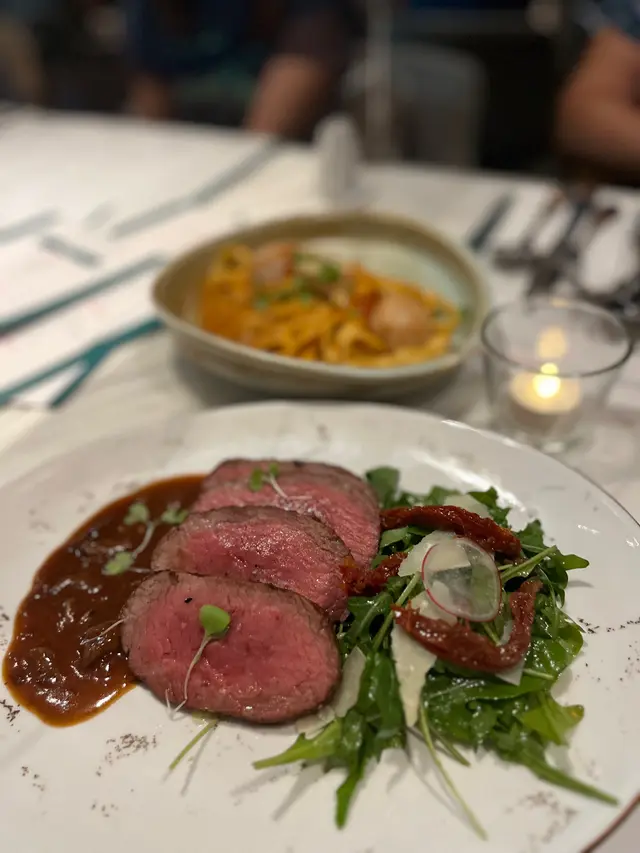 今日去咗銅鑼灣一間意大利餐廳食飯,食咗牛柳、黑松露意粉、芝士薯條,都非常唔錯好有驚喜。8OZ 意大利牛柳配車厘茄火箭菜 $308呢道牛柳必須叫五成熟嘅,確保牛柳相當軟滑入口即化。配埋酸酸地嘅車厘茄同火箭菜,真係超開胃,味道非常平衡,唔會太過重口味,正好襯托出牛柳嘅鮮味。新鮮黑松露蘑菇扁意大利麵 $178呢道意大利麵真係好有特色,雖然味道淡淡地,但係用上新鮮黑松露,黑松露味超重,完全唔會被其他成份掩蓋。每一口都可以感受到黑松露嘅獨特香氣,同時奶油同芝士嘅融合,令到口感更加豐富。巴馬臣芝土薯條 $68呢款薯條真係好特別,唔係用一般嘅芝士汁,而係用一絲絲嘅巴馬臣芝士。薯條炸得超香脆,每一口都可以品嚐到芝士嘅鹹香,真係令人停唔到口。呢道小食絕對係一個值得一試嘅驚喜。…查看更多