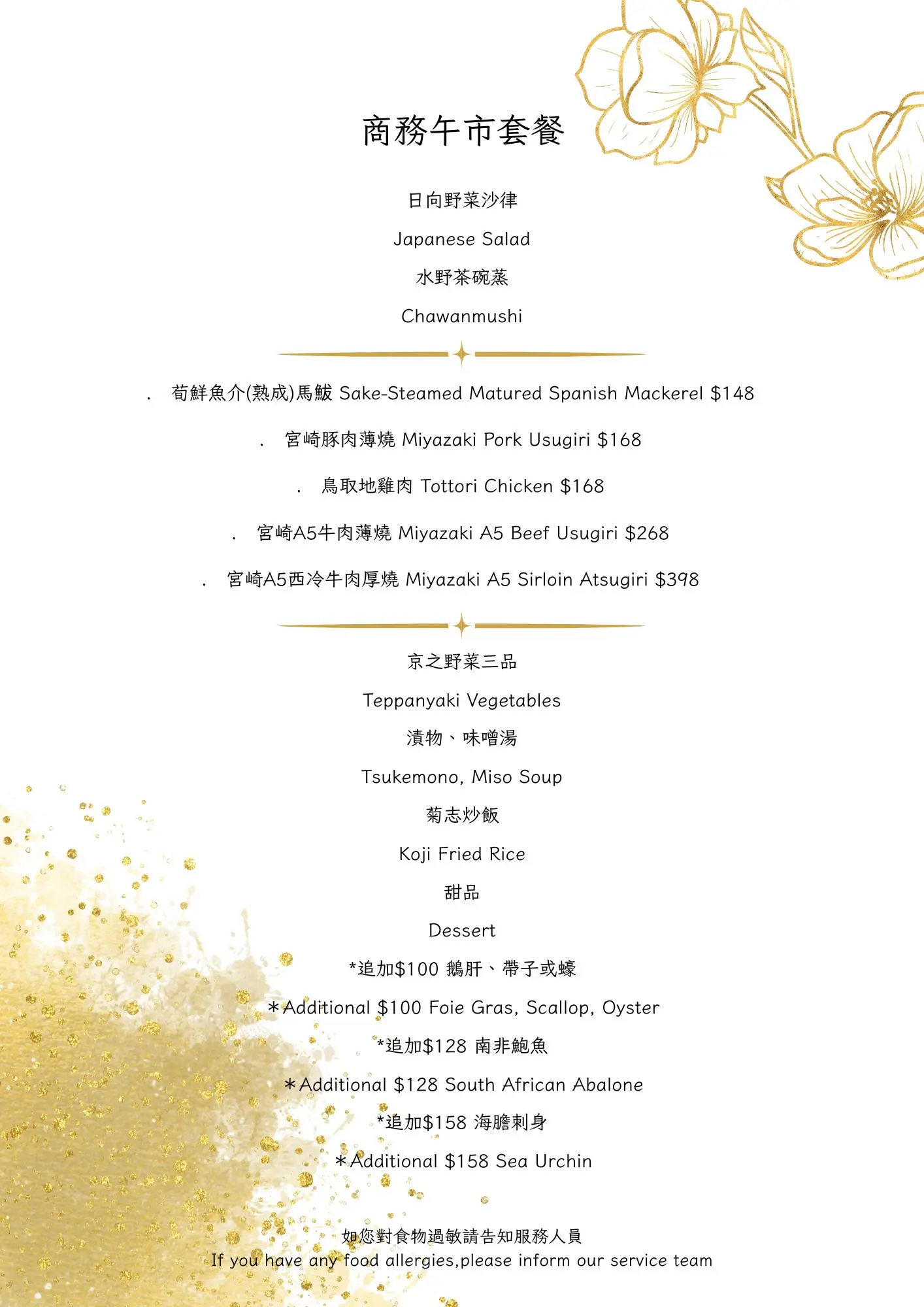 對餐牌有疑問嗎?請與我們聯絡!