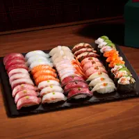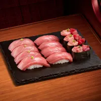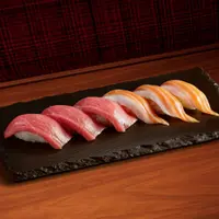大吞拿魚腩/吞拿魚/油甘魚/三文魚/珍寶帶子/墨魚/藁燒鰹魚/鯛魚/珍寶赤海蝦/炙燒三文魚/炙燒鰻魚/炙燒左口魚裙邊/深海紅蟹蟹膏軍艦/辣味三文魚親子軍艦/赤蝦蟹膏軍艦