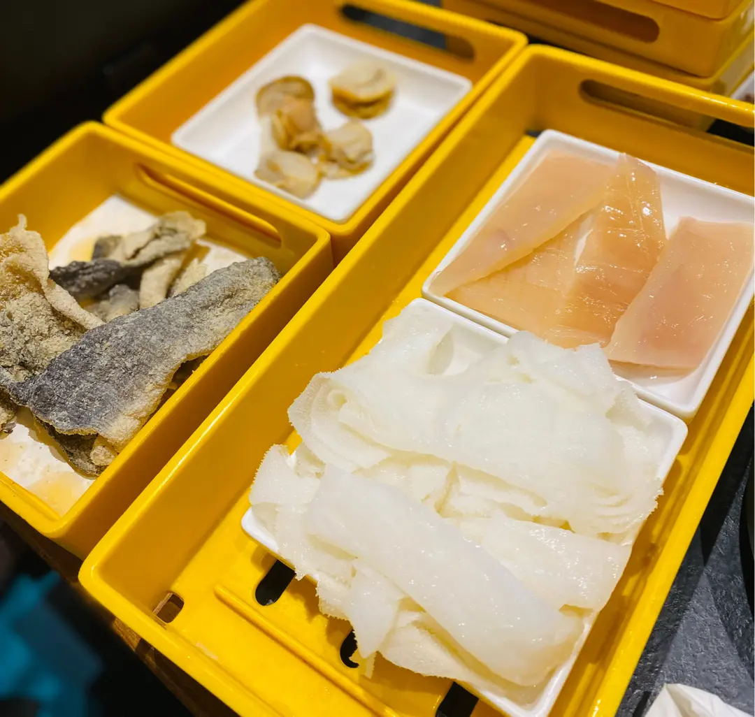 牛柏葉,水魷,帆立貝,炸魚皮