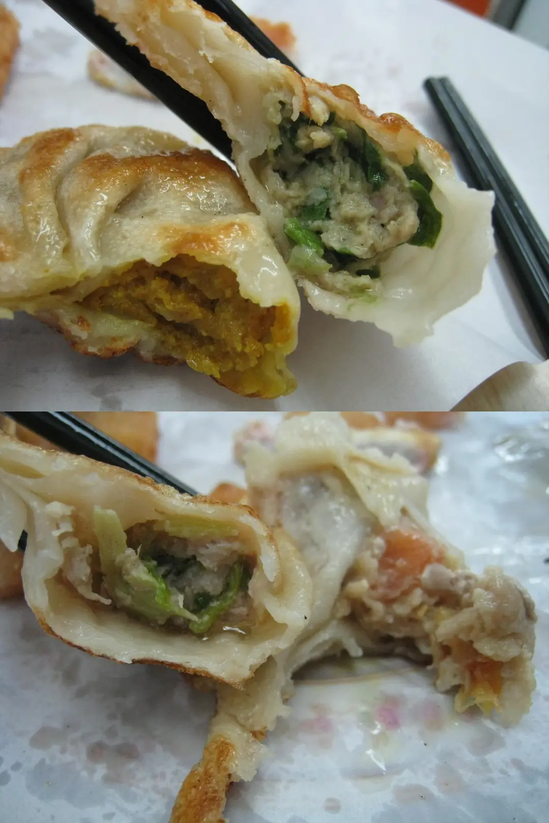 上圖:咖哩餃及白菜餃;下圖:芹菜餃及蕃茄餃