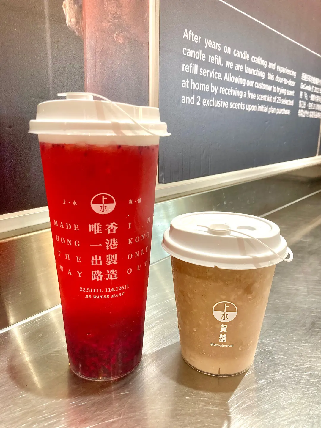 (左)蜂蜜鮮火龍果翠玉烏龍;(右) 海鹽花生朱古力牛奶