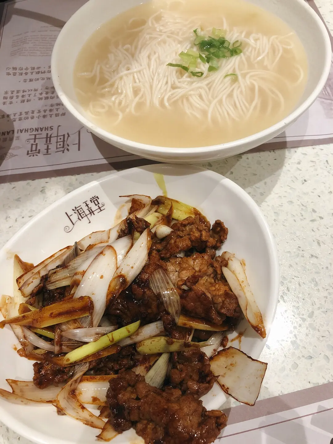 京葱爆牛肉配上海湯麵