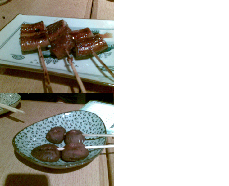 上:燒鰻魚;下:串燒冬菇