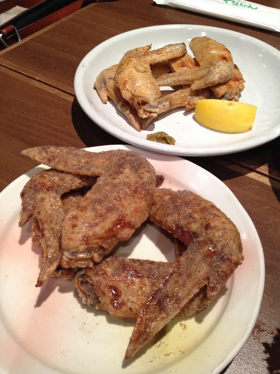 “Phantom” wings (front) and grilled chicken wings with salt (back)