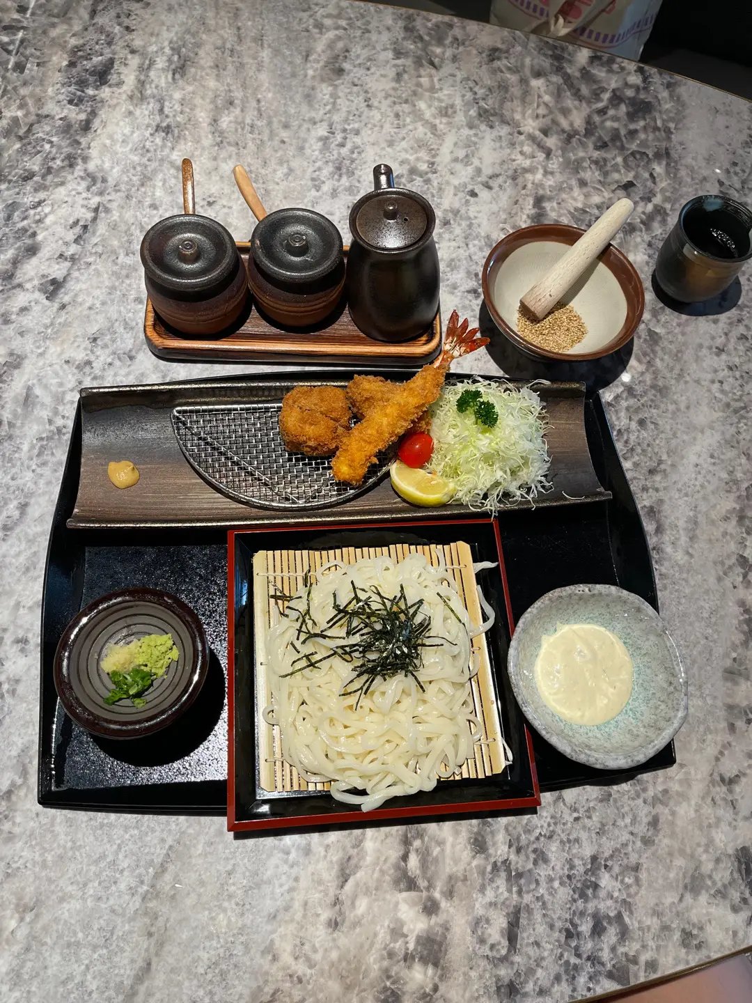 吉列深海大蝦、廣島生蠔、豬柳伴凍烏冬