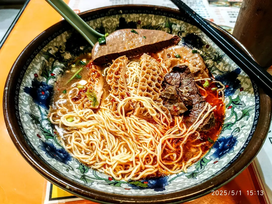 五香牛雜幼麵加辣椒油跟凍鴛鴦