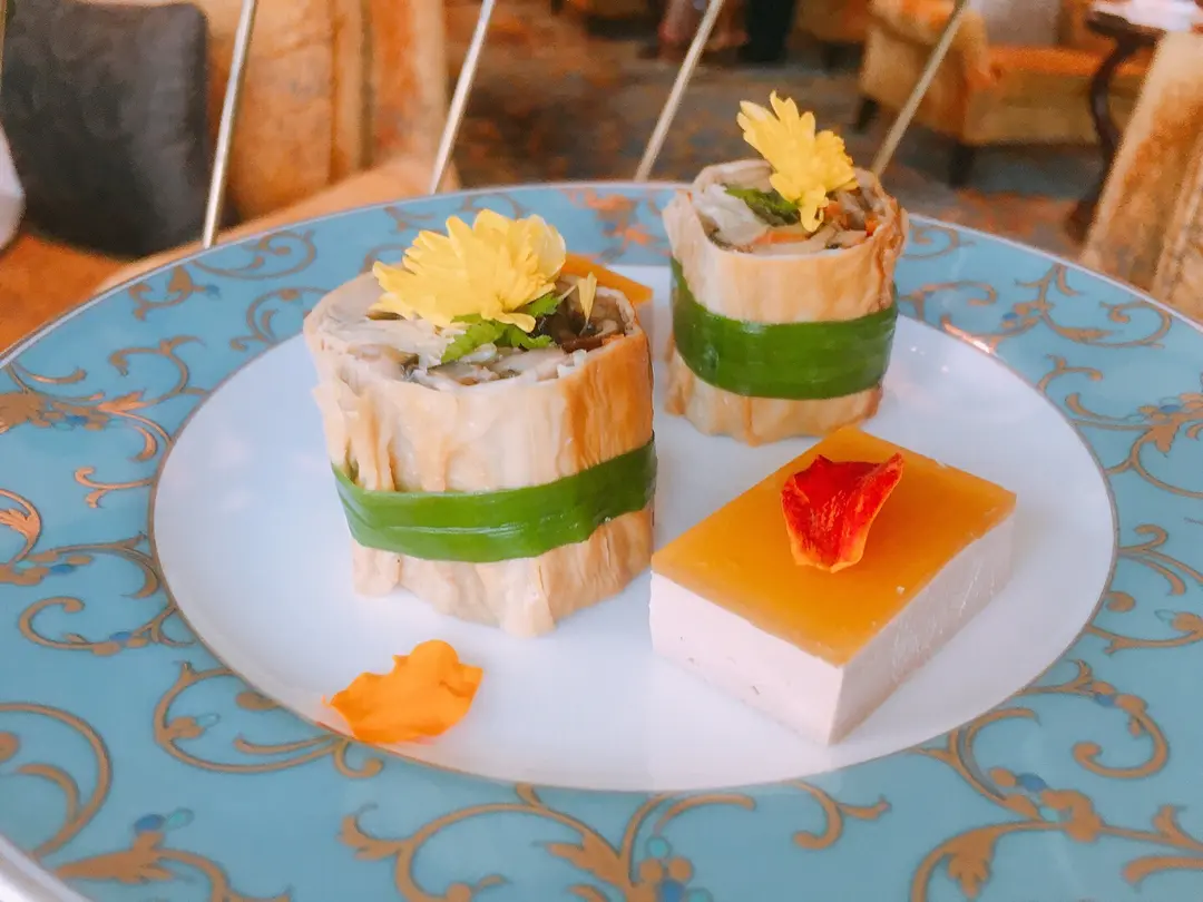 櫻花蝦麻醬茄子卷 甜酒橘子鵝肝凍