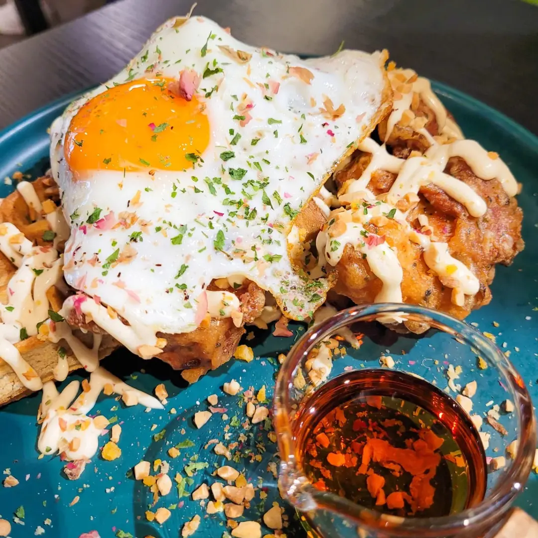 芥末洋蔥醬炸雞窩夫