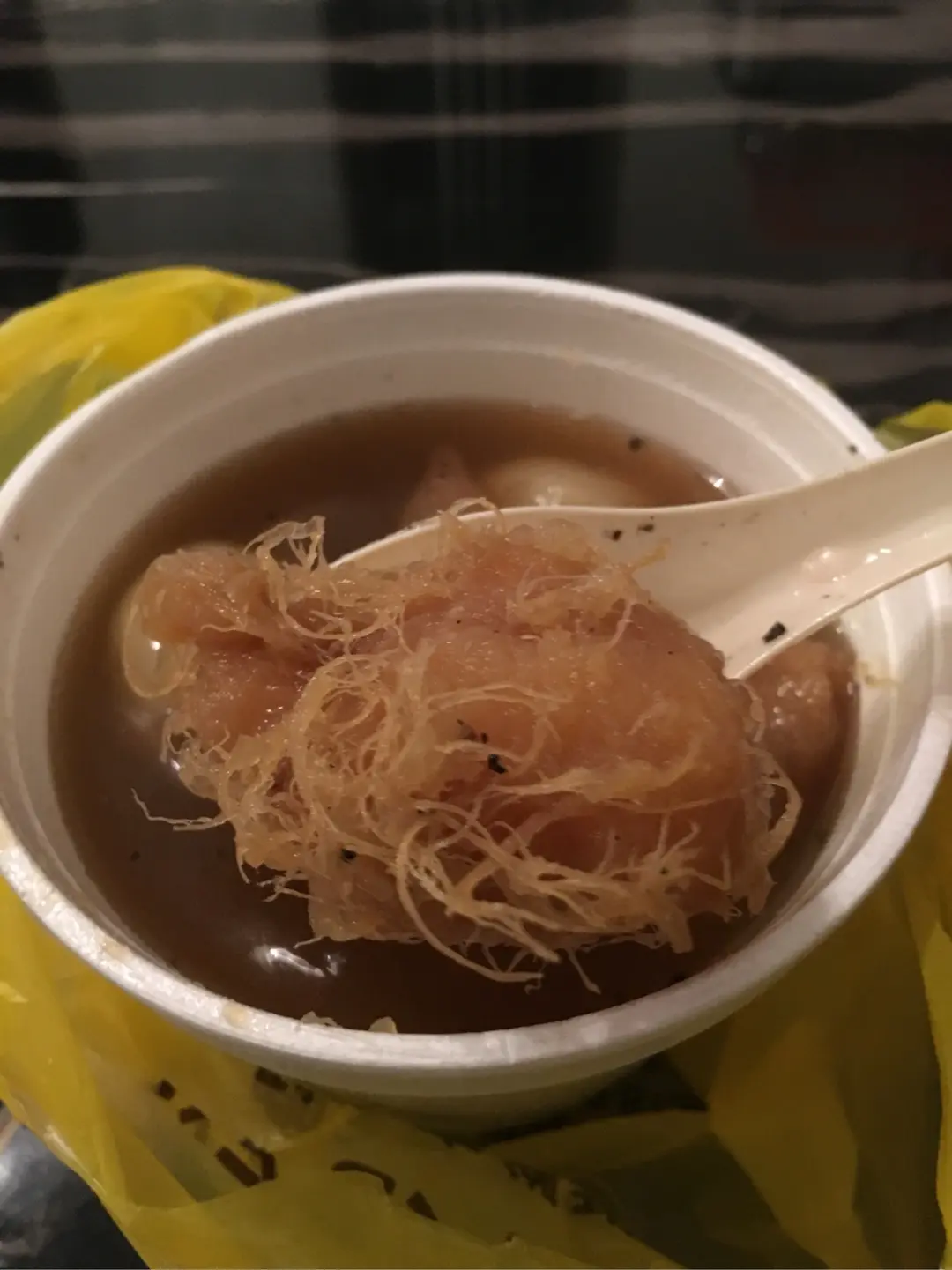 蕃薯糖水加4粒芝麻湯圓
