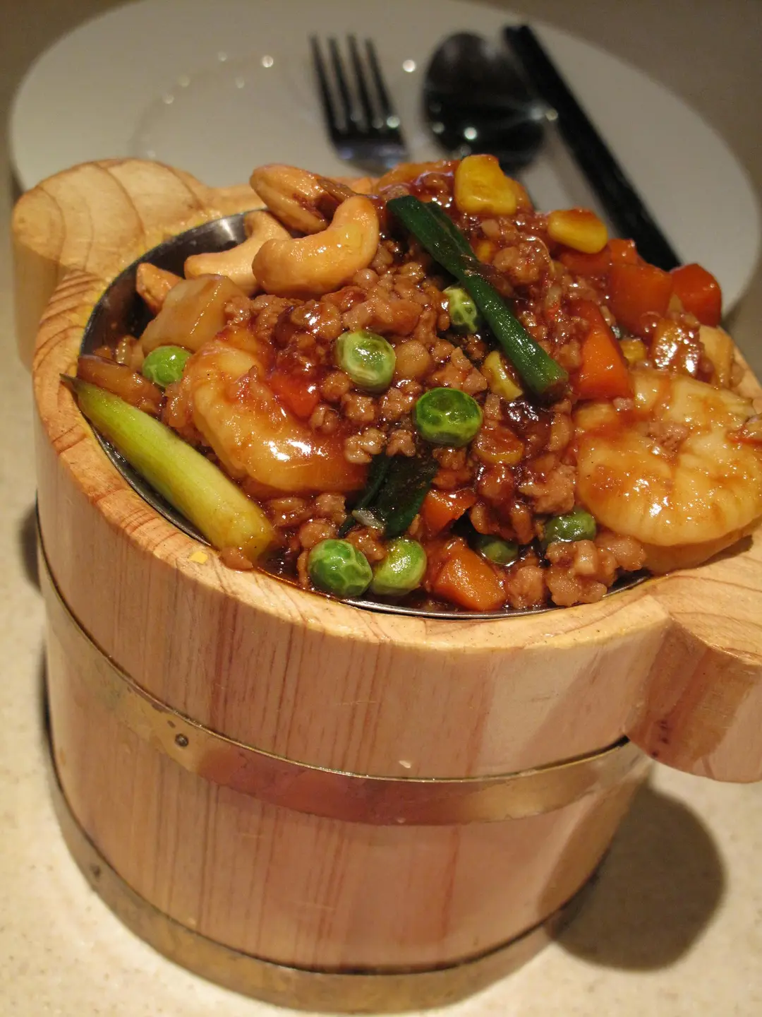 以木桶作包裝,賣相重如功能,新派南亞菜做風。
