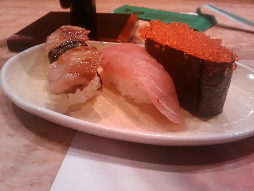 任選三件壽司,由師傅親自遞上