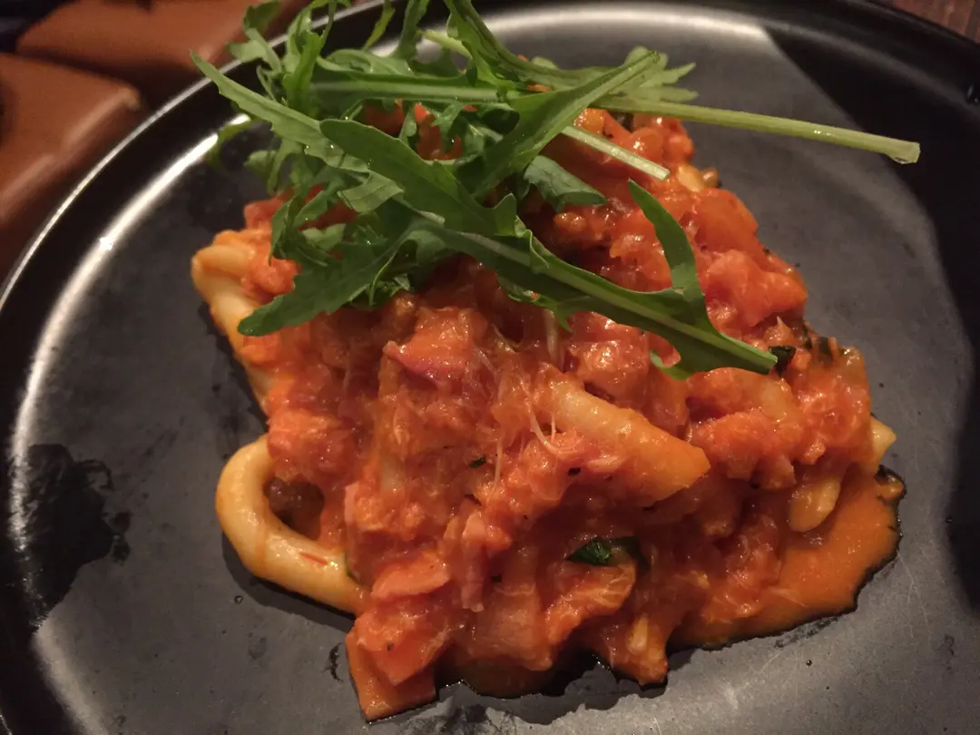 鮮蟹肉煙肉海膽汁扭捲粉伴鮮海膽