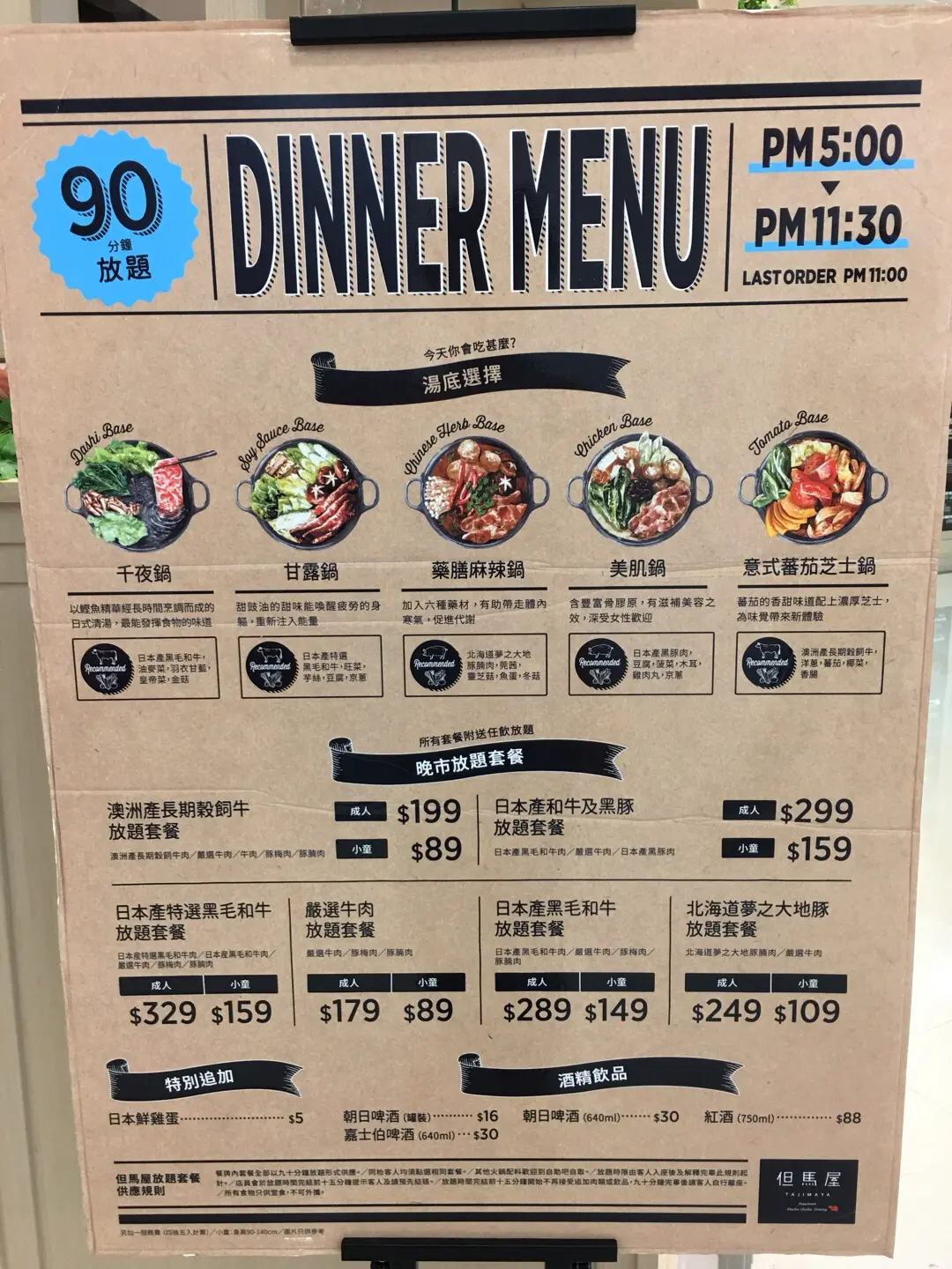 各種湯底和套餐價格