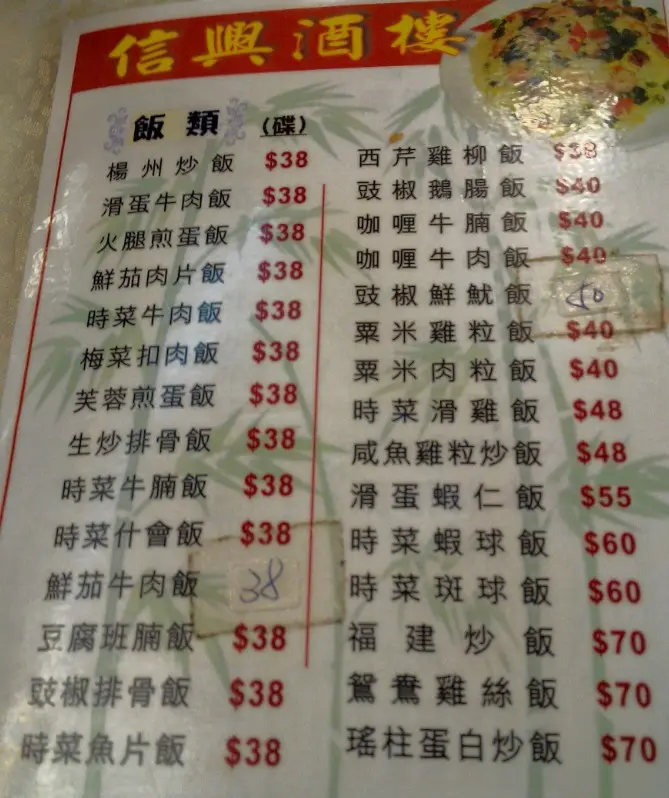 信興的餐牌: 中式/西式 飯類