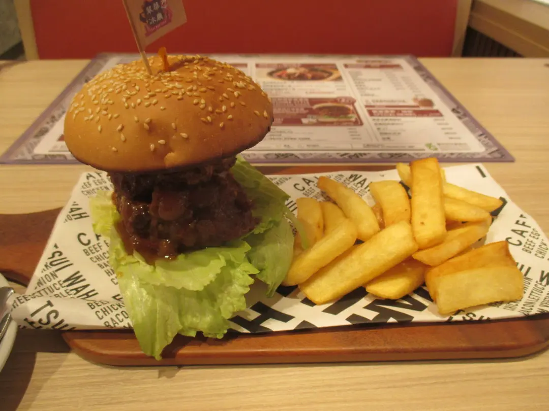 秘製豬軟骨漢堡配拼薯條