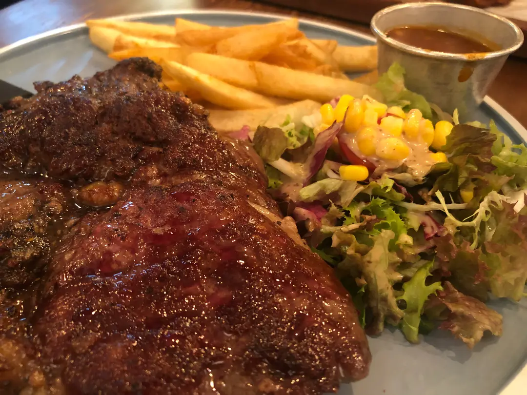 相撲手西冷牛扒配香蒜燒汁配薯菜