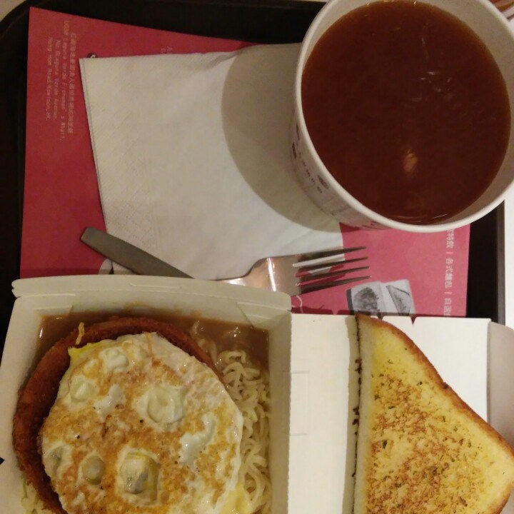富士山肉汁撈芝士公仔麵+蒜蓉包