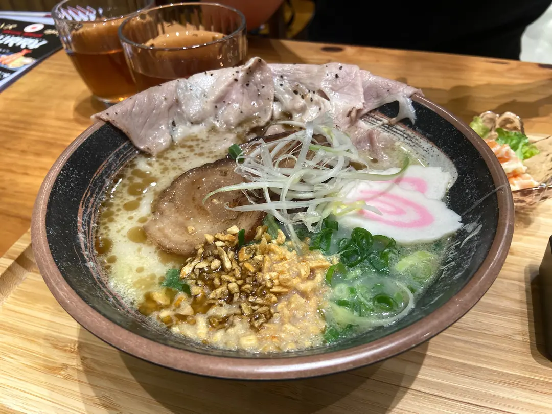 黑蒜炙燒黑毛豬叉燒極濃骨膠原白雞湯烏冬