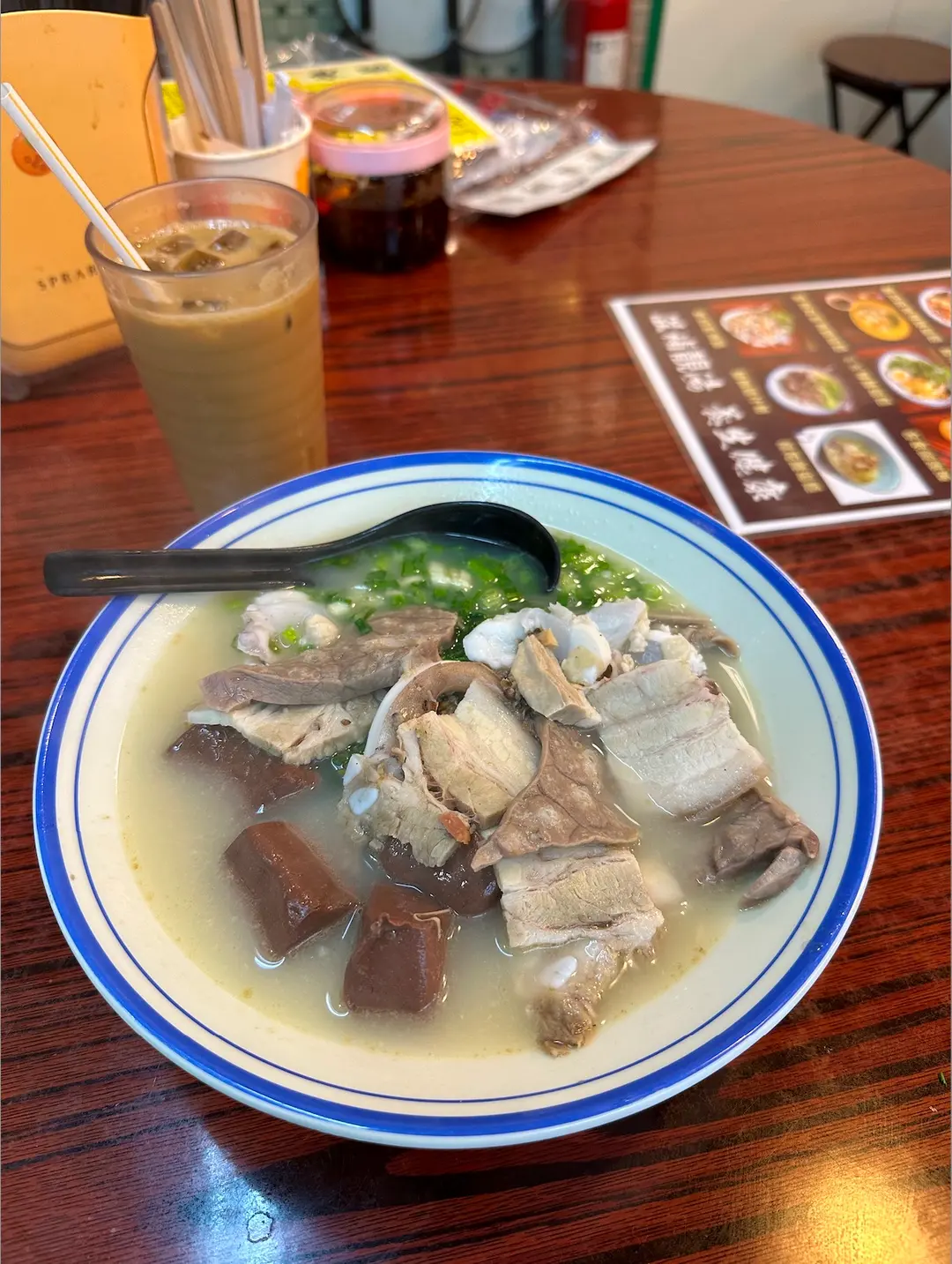 胡椒湯豬雜四拼公仔麵(豬紅、腩片、豬肺、墨魚頭)+ 凍鴛鴦