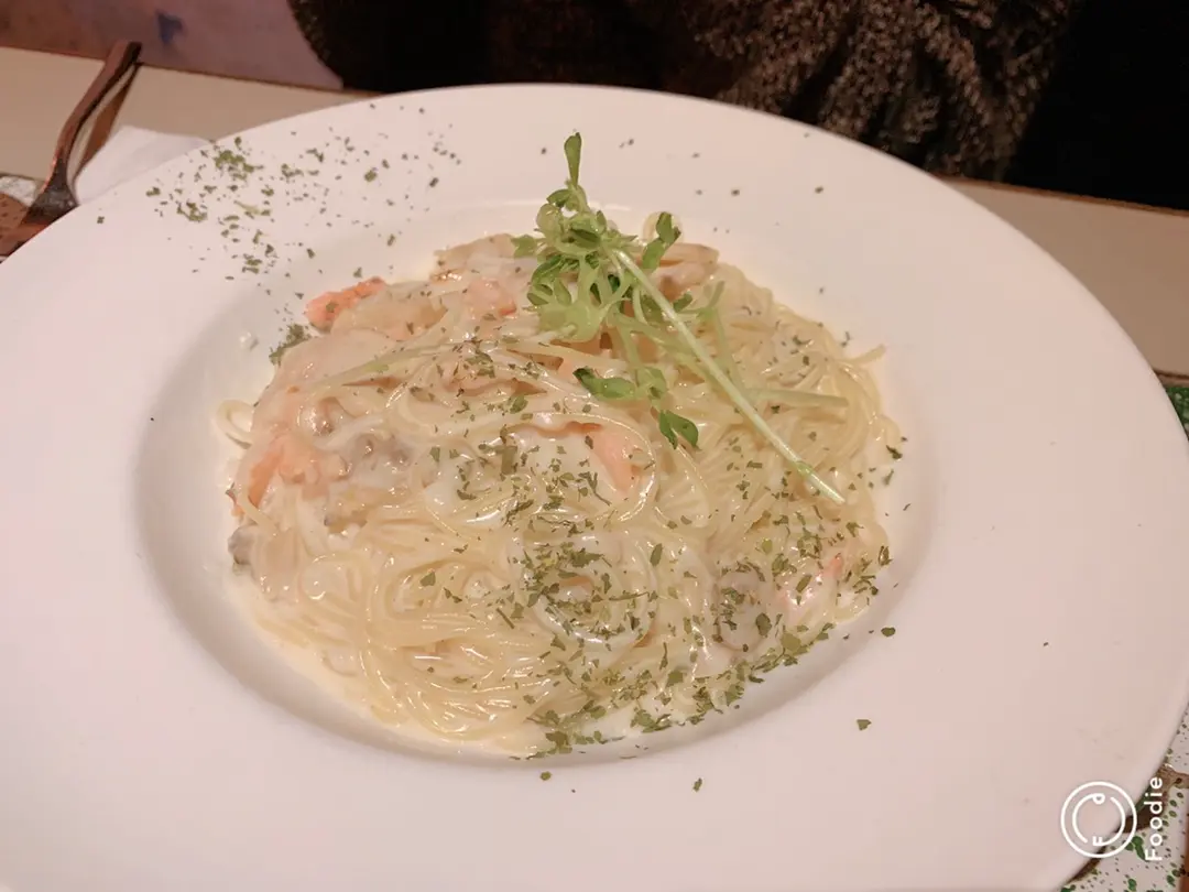 煙三文魚蜆肉天使麵
