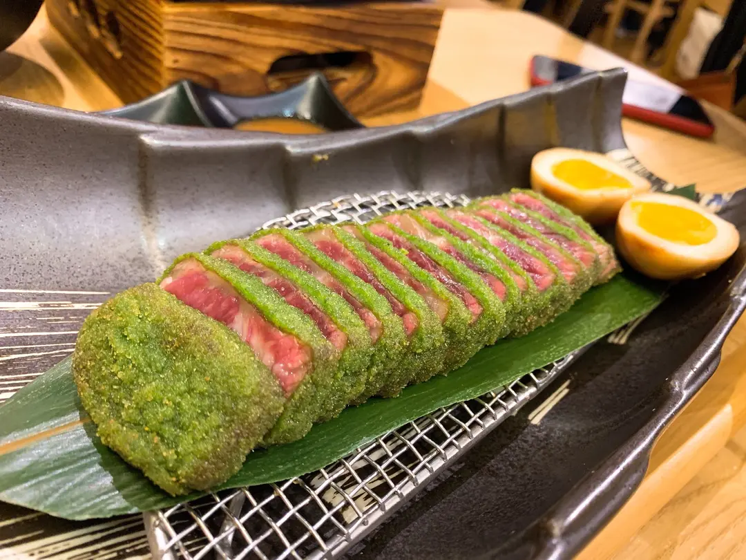 初見版石燒香草吉列牛肉拼糖心蛋配白飯