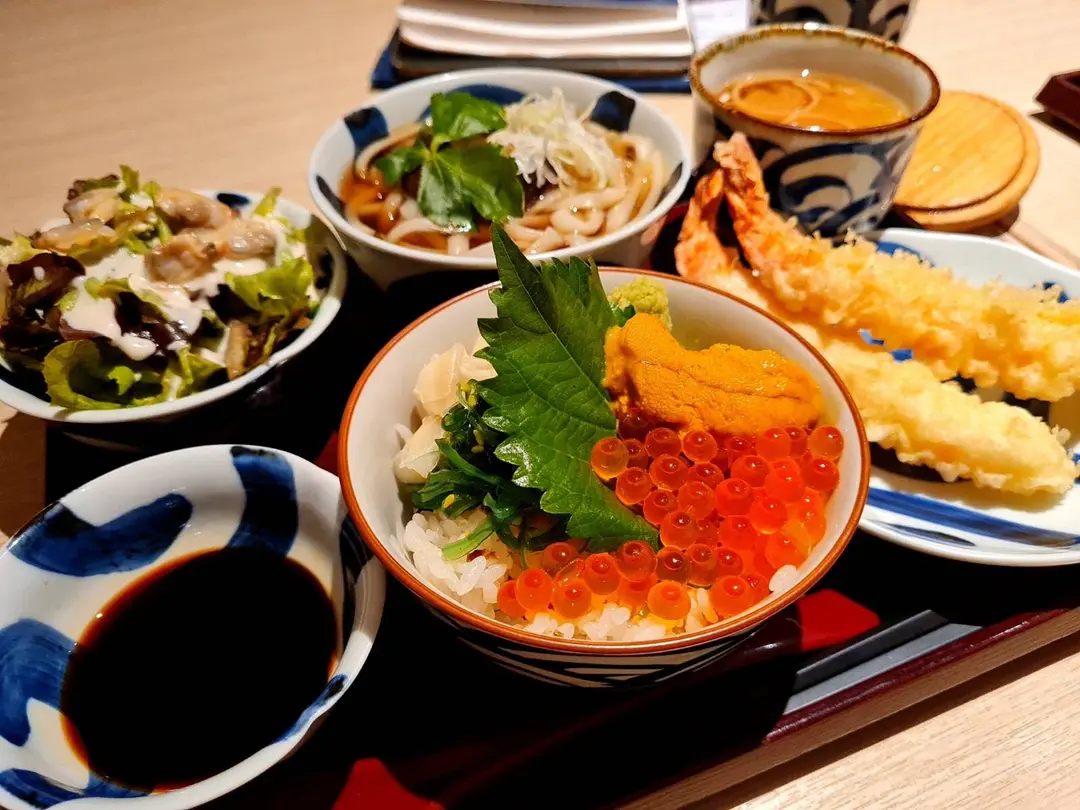 迷你海膽三文魚子丼 ‧ 醬油雞湯烏冬