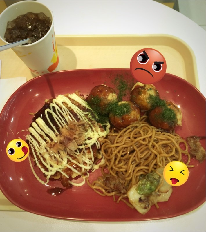 Acceptable okonomiyaki, no comment fried noodle and awful takoyaki