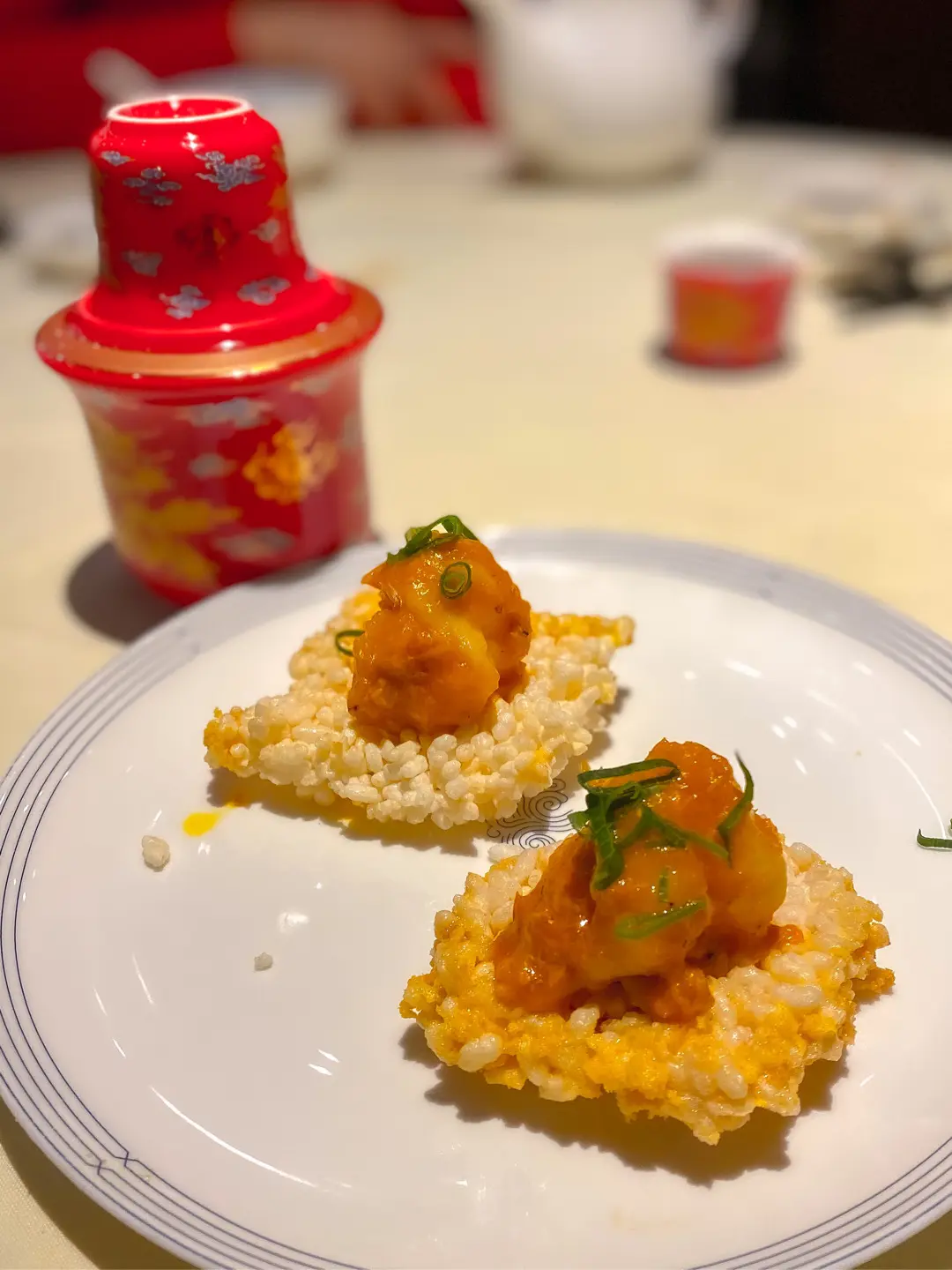 Crispy  Rice  Cracker  with  Hairy  Crab  Roe  &  Prawn