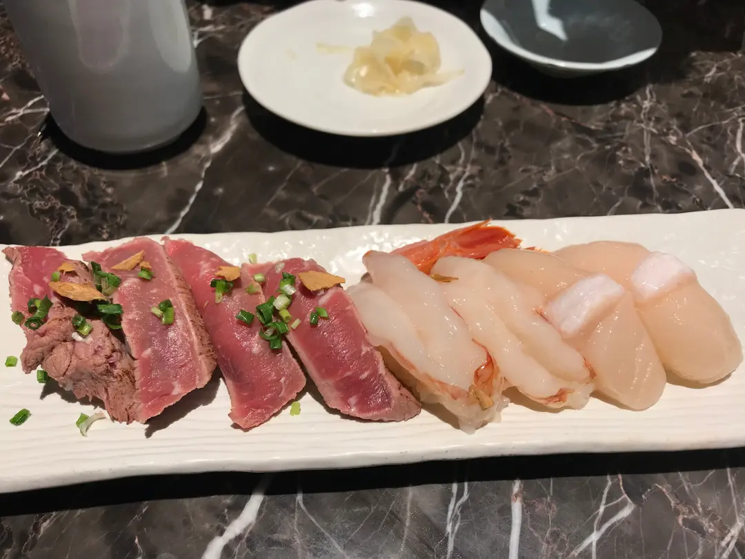 Seared Beef, Jumbo Red Shrimp & Japanese Jumbo Scallop