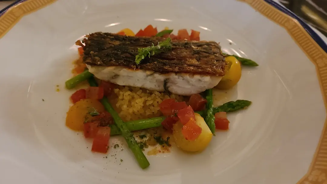 香煎盲曹配泰國蘆筍、香草布格麥、初榨橄欖油醬