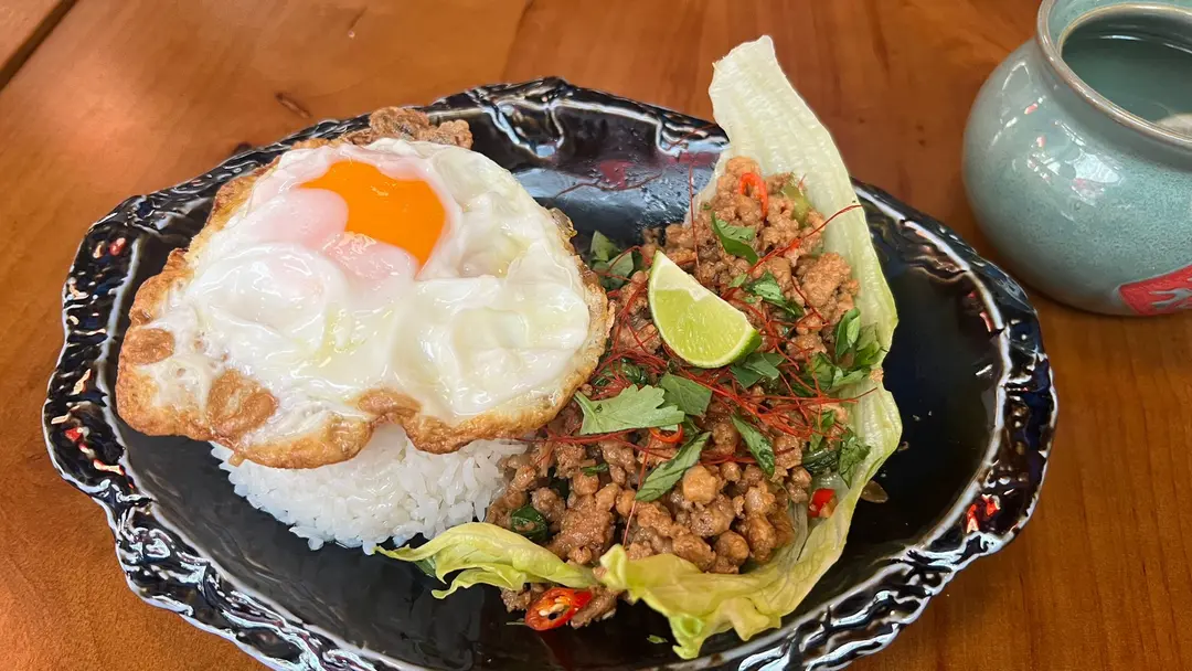 泰式金不換香葉肉碎飯配煎燶邊蛋🍳: 🇹🇭午市$78 / Tea $68