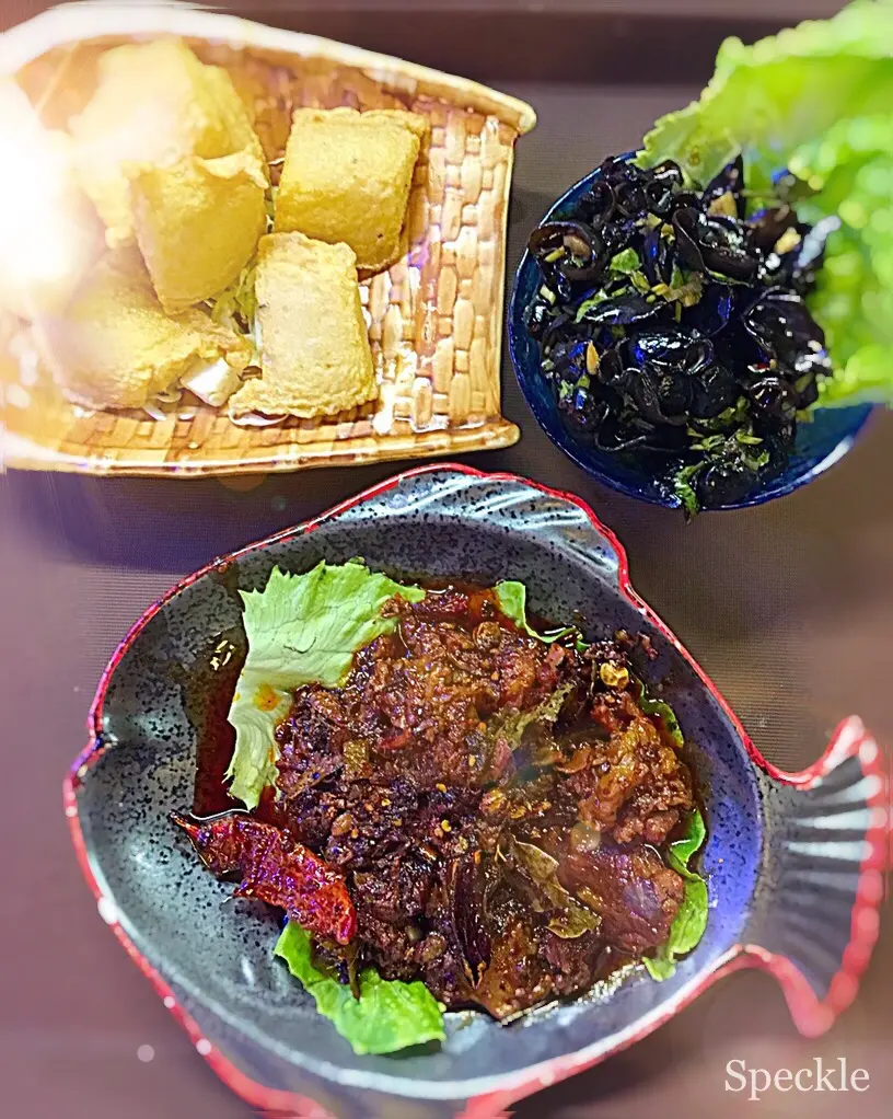 麻辣坑腩,涼拌鼠耳,炸魚片頭